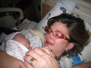 Turns out, she had her hand up next to her face the whole time, forcing me to force her and her stinking hand & elbow out WITH HER HEAD. And thus, a second degree tear. I didn’t care. I was so happy to have her out that I nearly passed out from exhaustion and elation. Thanks to the Mag Sulfate, I totally missed her being born, my eyes were shut the whole time. She was a little out of it at birth as well, scoring only 6 on her initial APGAR, but quickly rebounded to a 9 on her second.